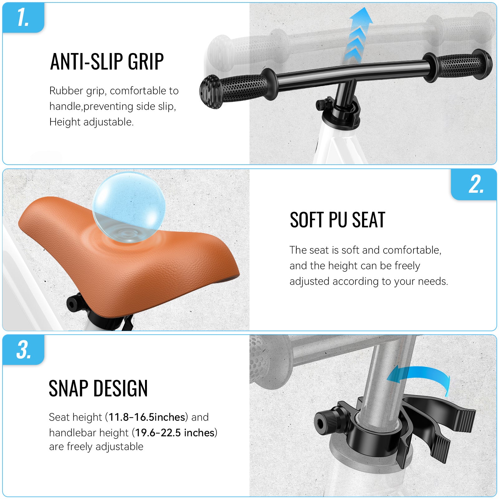 SEREED Balance Bike, 2025 Upgrade Toddler Balance Bike for 2-5 Years Old Boys & Girls, No Pedal Kids Bicycle Toys, Tool-Free Adjustment, Customize Plate with Stickers,