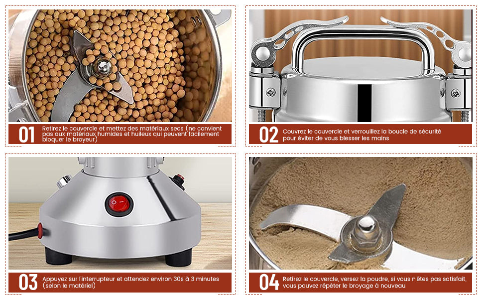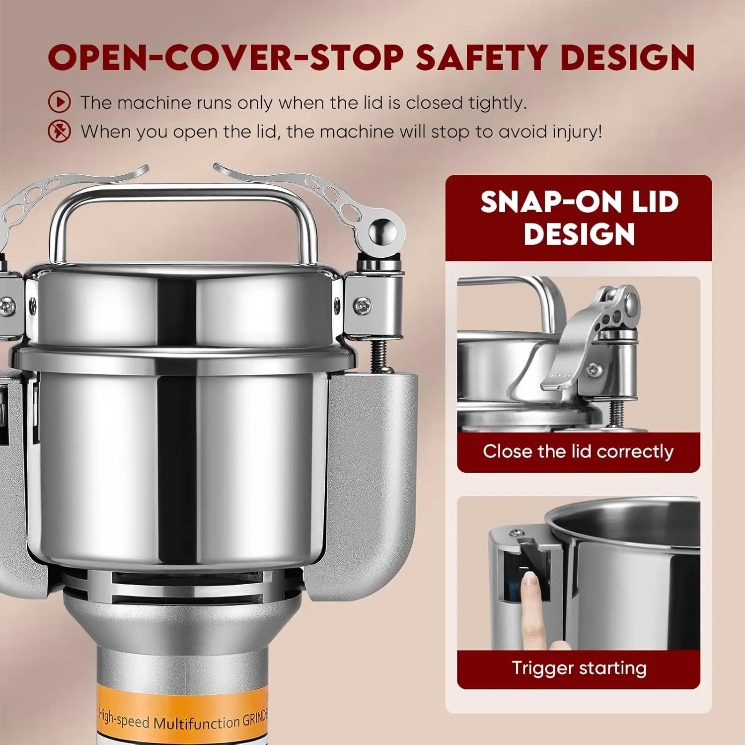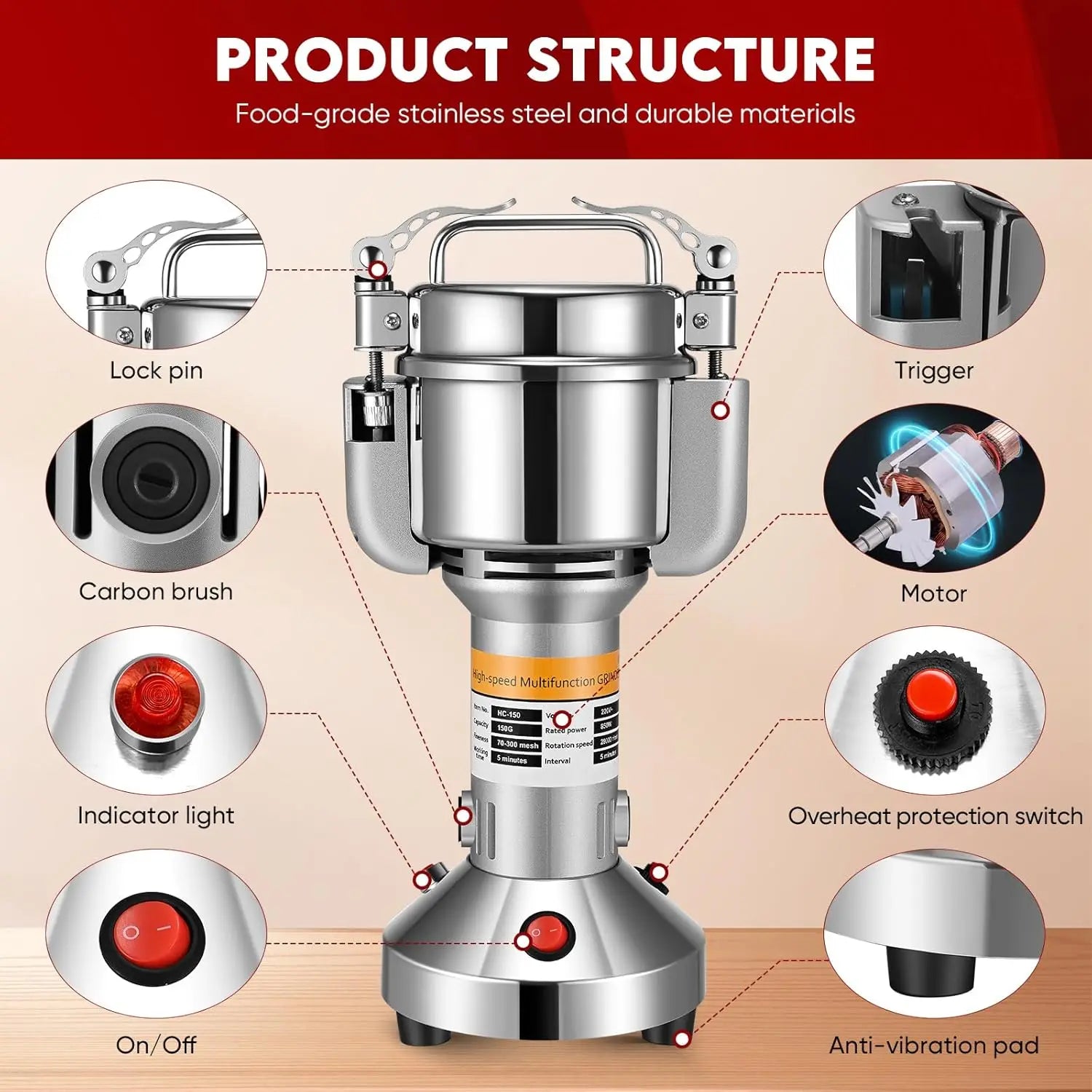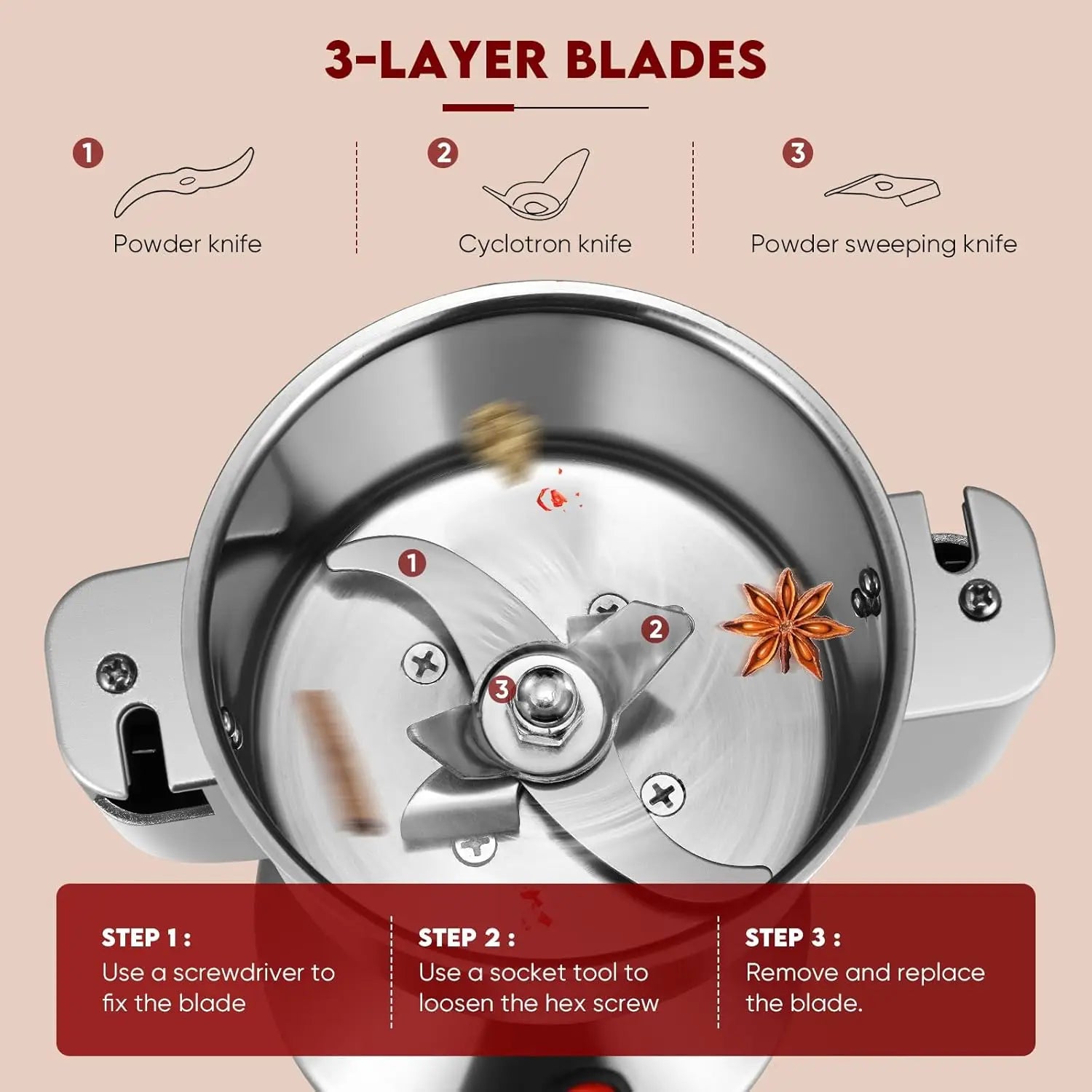 150g Mulino per farina elettrico 220V Grana di erbe Spezie Smerigliatrice per cereali, 28000r/min Smerigliatrice portatile Rettificatrice a 3 lame