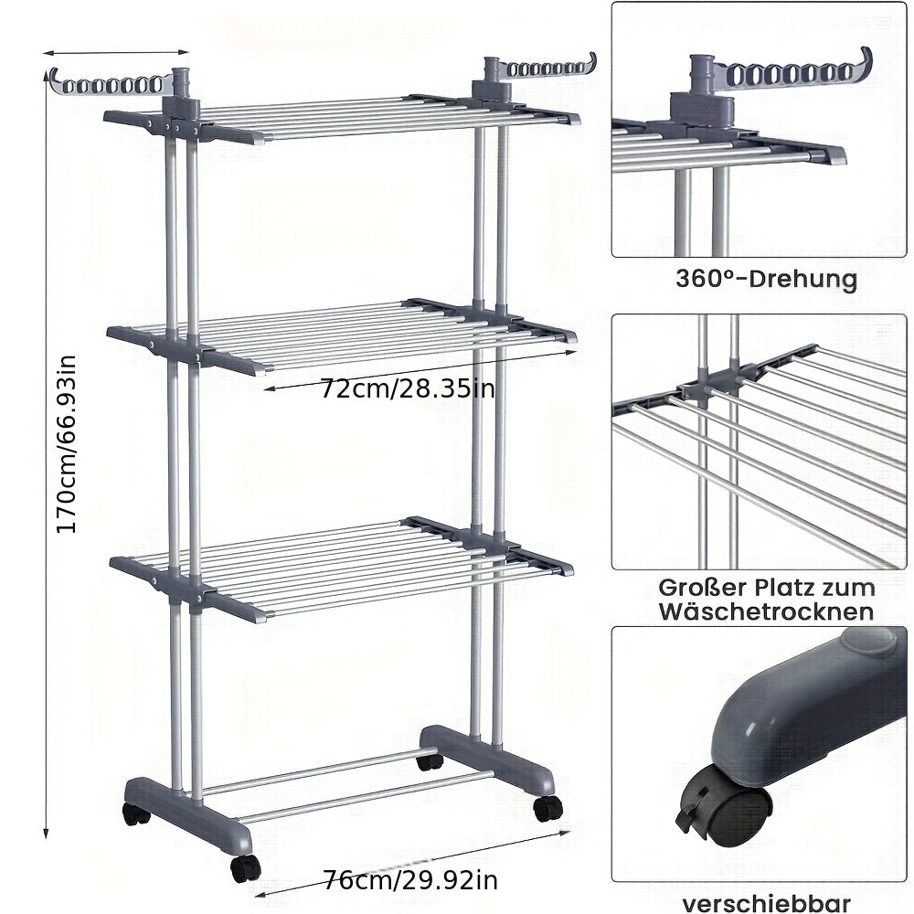Stendibiancheria Pieghevole 3 Livelli con Ruote - Furnestorica Grigio