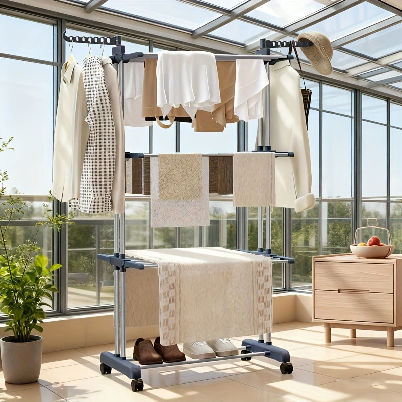 Stendibiancheria Pieghevole Professionale a 3 Livelli con Ruote