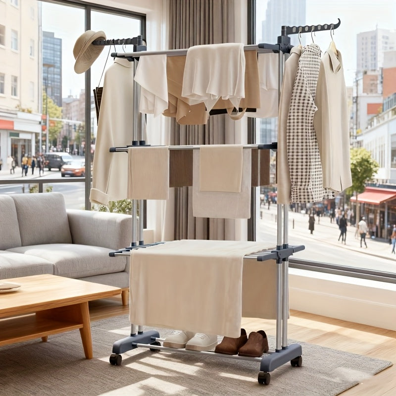 Perfetto per famiglie, questo stendibiancheria combina praticità, robustezza e design intelligente per rendere l'asciugatura del bucato semplice ed efficiente.