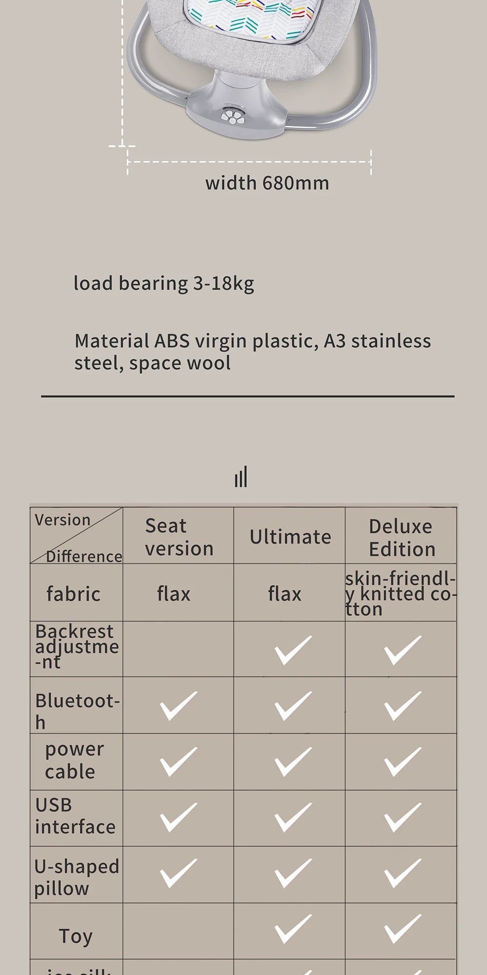 - Funzioni: Dondolo elettrico, musica Bluetooth, zanzariera