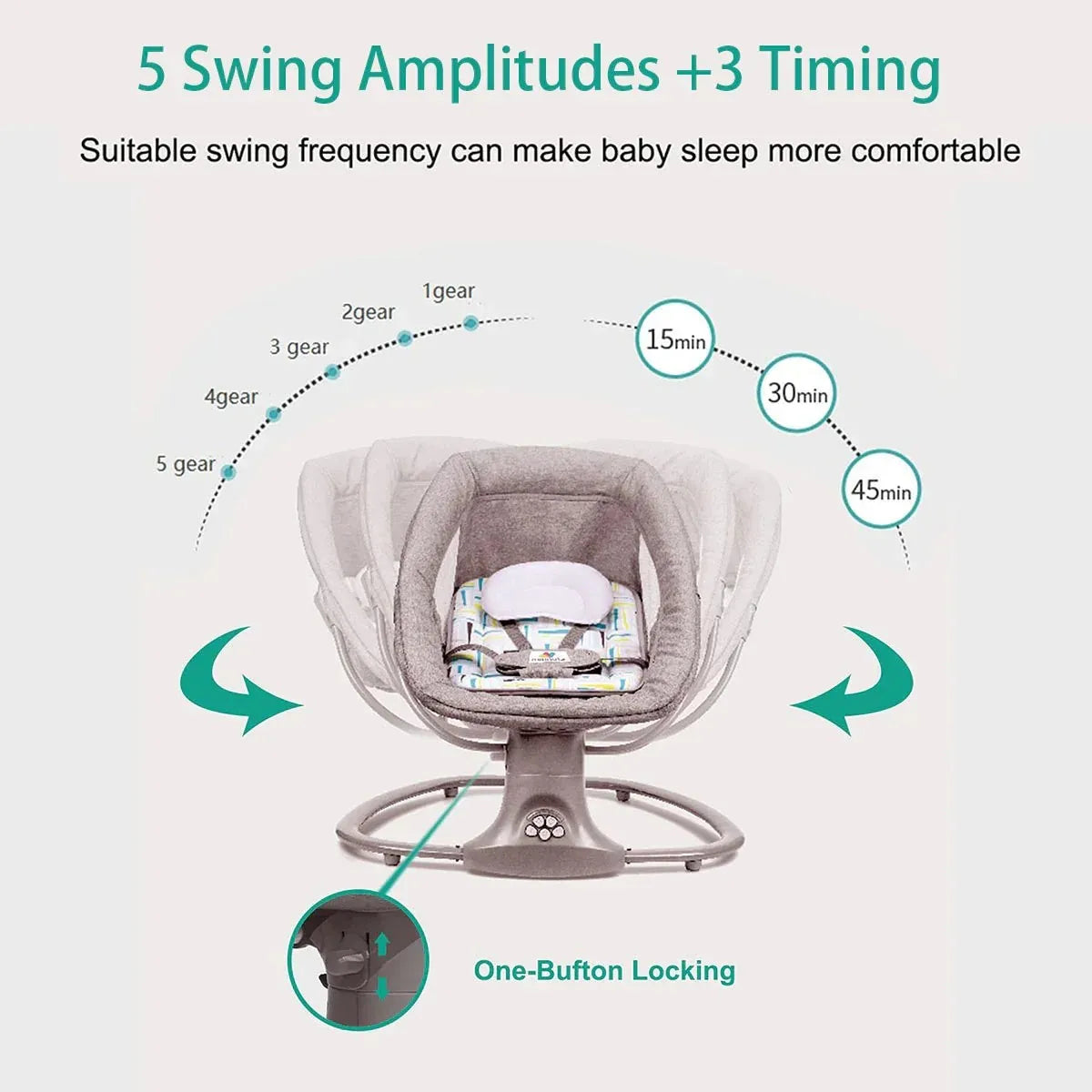 Culla Elettrica Bluetooth con Zanzariera - Sedia a Dondolo Multifunzionale per Neonati 0-36 Mesi